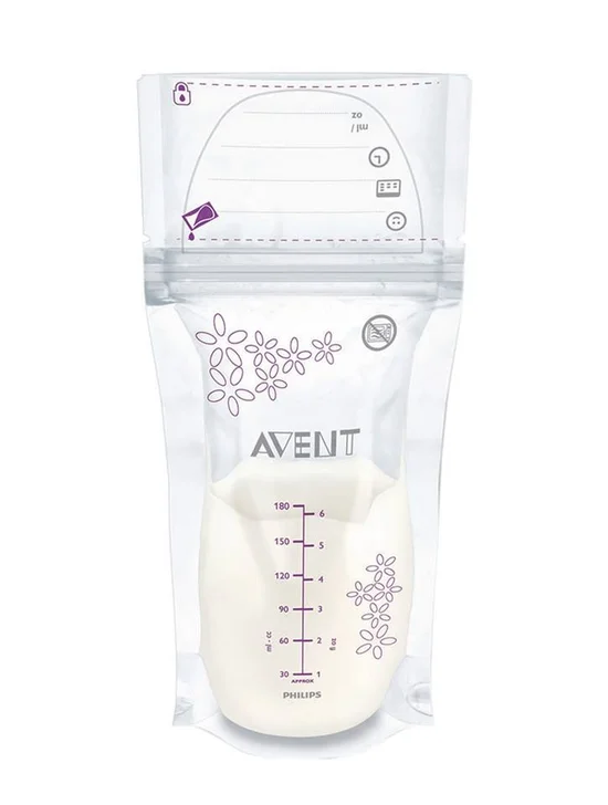 Philips Avent breast milk storage bags can hold up to 6 oz. or 180 ml. of breast milk at a time. Can be refrigerated or frozen to ensure that it is safe for the baby.