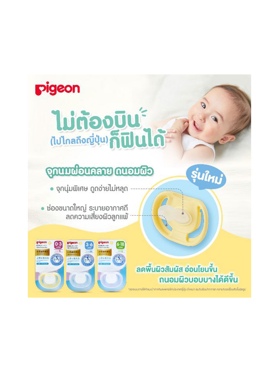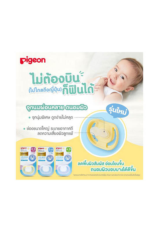 PIGEON New Relaxing Nipple Skin Friendly Pacifier, Specially designed for babies who suffer from allergic rashes after using the pacifier. The large compartment is designed for better ventilation. Minimize the area of the skin in contact with the skin. Ensure that the risk of allergic skin as reduced. Relaxed of worries that may be caused by the skin, gentle touch, friendly to newborn skin.