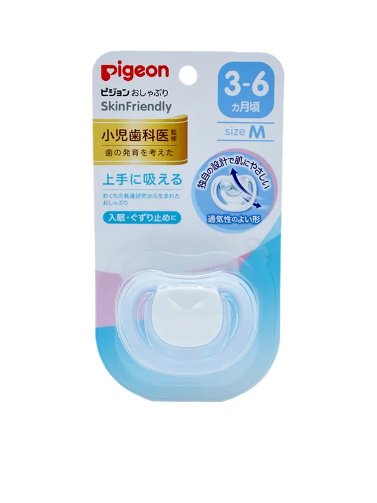 PIGEON New Relaxing Nipple Skin Friendly Pacifier, Specially designed for babies who suffer from allergic rashes after using the pacifier. The large compartment is designed for better ventilation. Minimize the area of the skin in contact with the skin. Ensure that the risk of allergic skin as reduced. Relaxed of worries that may be caused by the skin, gentle touch, friendly to newborn skin.