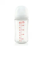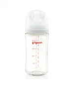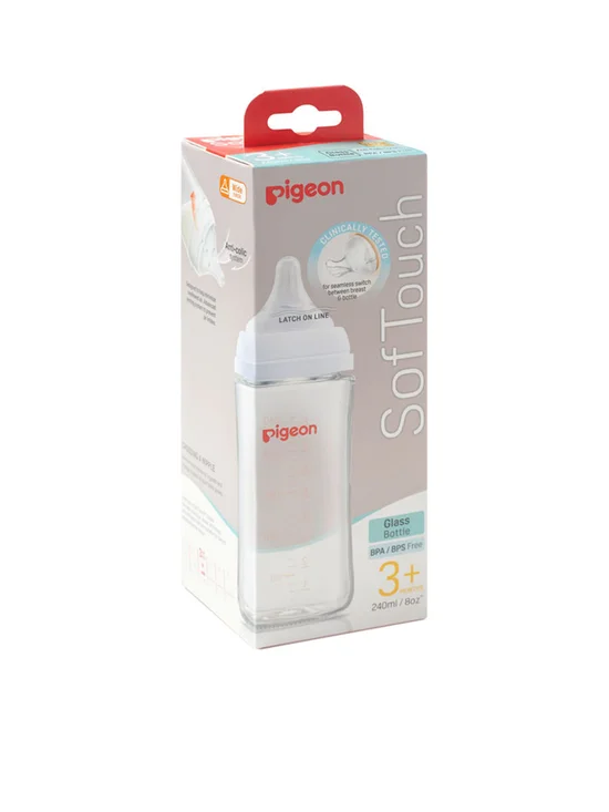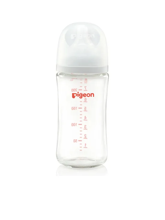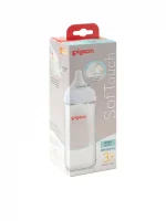 Introducing a glass milk bottle with a pacifier, similar to mother milk from the brand PIGEON. We have adjusted the shape of the bottle to bend it onto the palm of a hand, so it is easier to hold. The bottle is made of good quality PPSU material with heat resistance up to 180 degrees. It is also BPA & BPS free, so all mothers can be confident that this feeding bottle is the best and safest for their beloved child. In addition, the bottle cap has been redesigned to be easy to open and more convenient to use with some parts of the lid being transparent and some matte. This makes it easier to open. In addition, the pacifier, New Softouch, has been developed to be softer like a mother’s breast, along with a flower line indicating the right lip position for sucking as if sucking from a mother’s breast, so do not worry that the baby will stick to the pacifier.