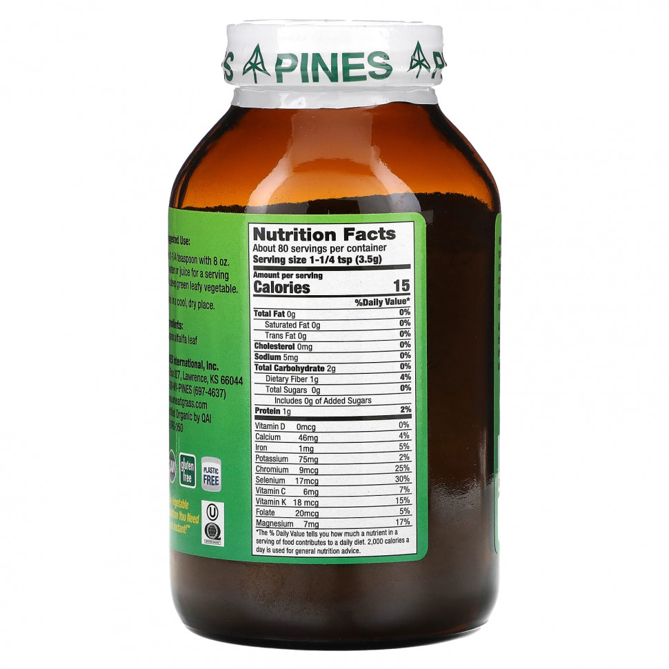 В результате порошок из сосны люцерны имеет ярко-зеленый цвет. Только ярко-зеленая люцерна может обеспечить питательные вещества, обнаруженные в исследованиях Чарльза Шнабеля и других ученых.