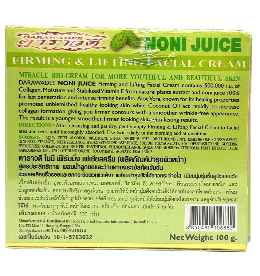 Питательный крем для лица Сок Нони от тайского производителя Darawadee — это сочетание коллагена с натуральными растительными компонентами, позволяющее увлажнять, питать дерму витаминами, восстанавливать упругость, подтягивать контур лица и разглаживать морщины. Результат применения крема — здоровый цвет и сияние более гладкой, упругой кожи. Продукт подходит как для ухода за кожей лица, так и для нежной кожи вокруг глаз.