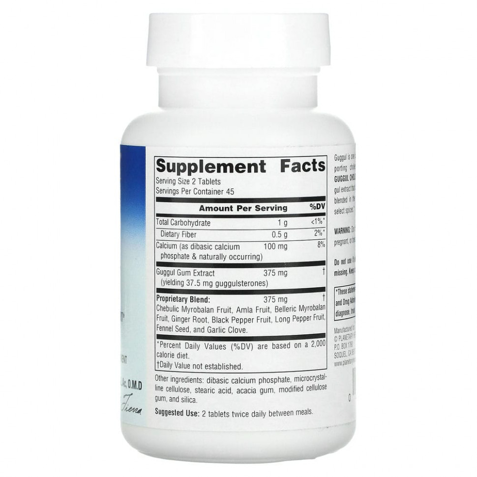 В состав Planetary Herbals Guggul Cholesterol Compound ™ входит экстракт гуггула, который ежедневно содержит 75 мг гуггулстеронов, смешанных традиционным способом с трипхалой и избранными специями.