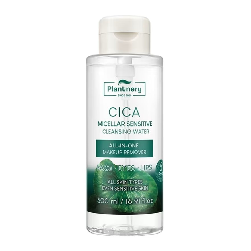 Plantnery Cica Micellar Sensitive Cleansing Water. All in One Makeup remover. Micellar plus xylitol technology. A cleansing water for sensitive skin that's made up of the Micellar plus xylitol technology with excellent cleansing and make up removing properties. Deeply cleanes the face in the morning and evening. thus preventing pollutants likely to exacerbate skin sensitivity from penetrating the skin. It preserves the natural protective film. Skin soothing Centella Asiatica from Madagascar helps repair a damaged skin barrier and soothe all face areas (face, eyes, lip). Skin Barrier Portulaca Oleracea extract has antioxidant capabilities that protect the skin surface barrier from free radical damage the occurs during the day. Skin Moisturizer MoistMagnet improves water retention for a long time and helps prevent dehydration.