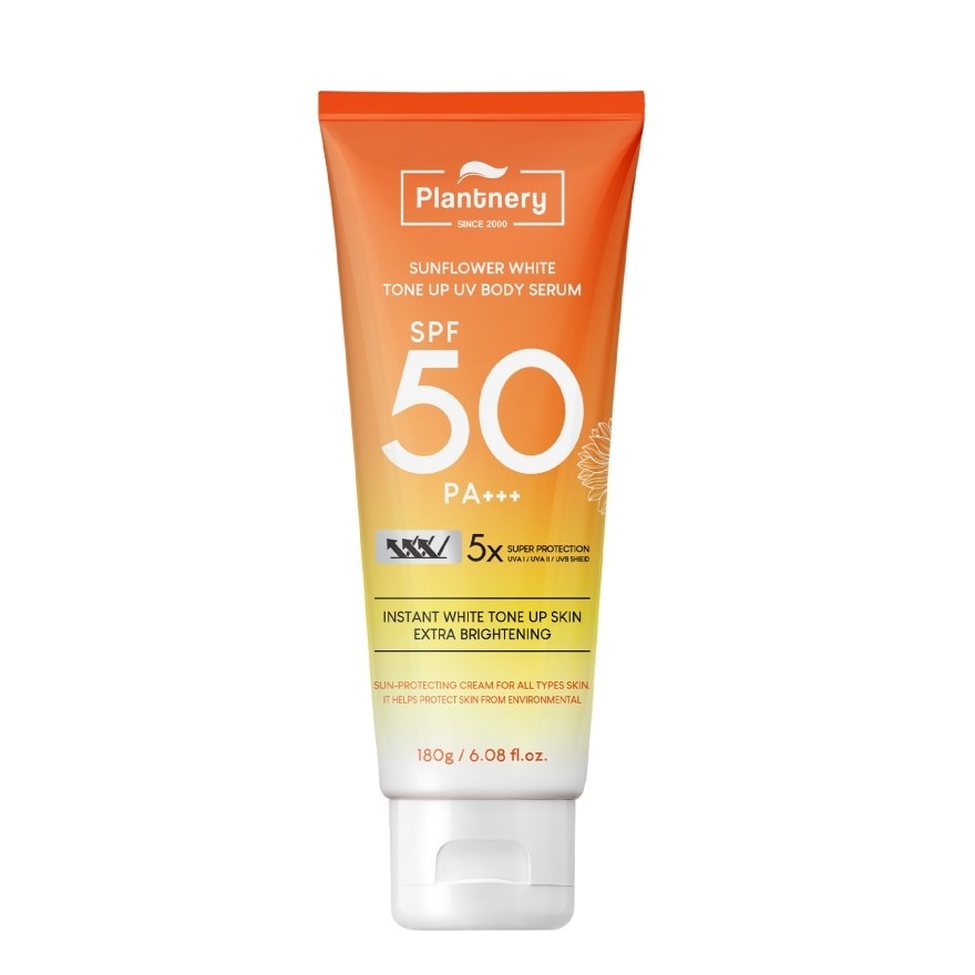 Plantnery Sunflower Tone Up UV Body Serum SPF 50 PA+++ 5X super protection, Instant white tone up skin extra brightening. Sun protect cream for all skin types. Helps protect skin from environmental.