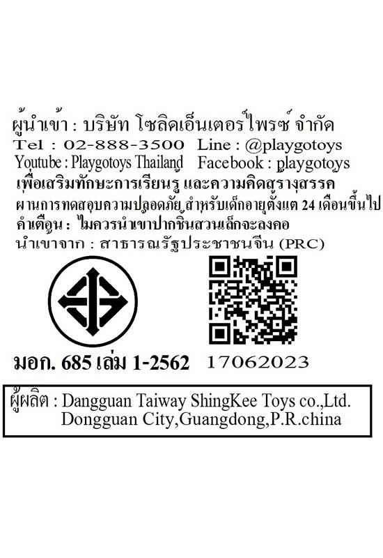 Playgo products are toys made of grade A plastic. Use non-toxic paint, which is not harmful to children. Bright colors look comfortable No sharp edges Suitable for children aged 3 years and over Product size (51x9x76)