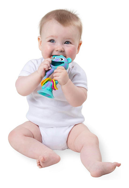 PLAYGRO Rattle beads and crinkle feet for auditory stimulation. A variety of fabrics and surfaces encourage tactile development. Easy to grasp neck for little hands. Textured click-clack rings are ideal for soothing teething babies. Reflective mirrored belly stimulates curiosity and teaches self awarene