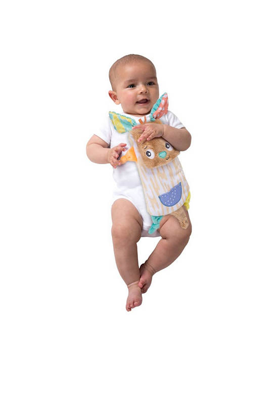 Plush and smooth surfaces, soft knots, loopy ribbons and jumbo cord fabric are perfect for baby’s fingers to gently grasp and touch. With a flat shape that is easy to cuddle, Comforter Kangaroo is a furry friend to help settle baby at bedtime, or take on the go. Simply use the removable clip to attach to the stroller, car seat or capsule to keep baby happy while you’re out and about. Makes a stunning gift for a new baby when paired with coordinates from our Playgro Home Fauna Friends range.