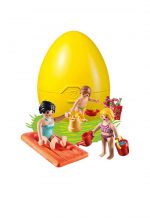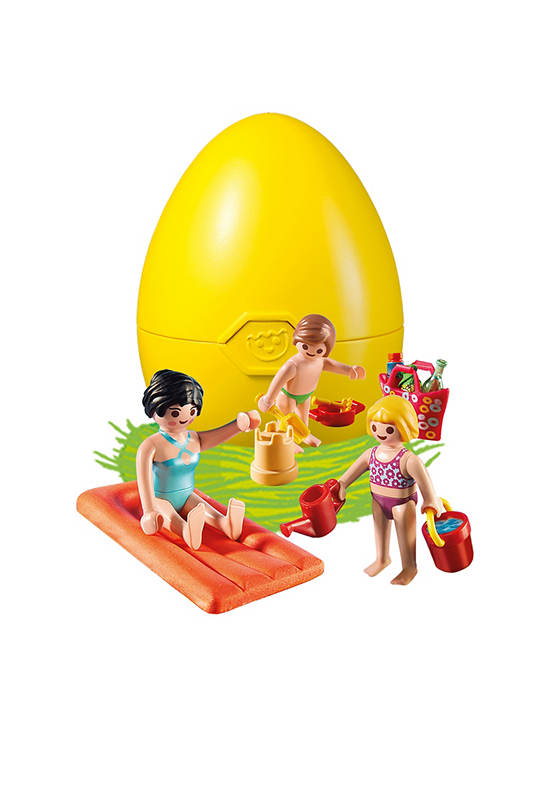 With floating air mattress and sand toys children have fun. Hidden in the big Easter egg.