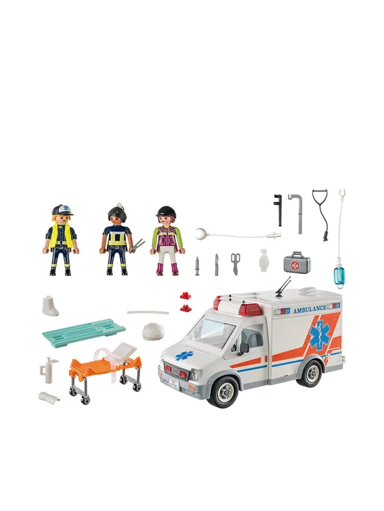 With light, original US ambulance siren sound and lots of accessories! Grab your stethoscope and head to the rescue with the versatile Ambulance from PLAYMOBIL. This amazing set features an ambulance with siren sounds and opening back door with space for a stretcher. Easily access the ambulance’s interior thanks to the removable roofs. The vehicle has various compartments for storing all the necessary medical equipment.