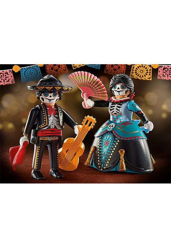 Each detailed figure reflects the fine craftsmanship and symbolic elements of this Mexican holiday. Colorful costumes decorated with traditional patterns and festive accessories bring these Playmobil minifigures to life.