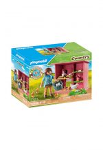 What would be a farm without chickens? With this colourful PLAYMOBIL playset, the chickens can move into your farm. The hen house is equipped with two shelves and a perch and is home to two hens, a rooster and six chicks. The hens and rooster can be fixed to the perch with the feet. The sliding board at the back of the house can be opened and closed. Give your hen house an individual touch with the included cheerful stickers. The 28-piece toy set includes a PLAYMOBIL figure, a hen house as well as two chickens, a rooster and six chicks.
