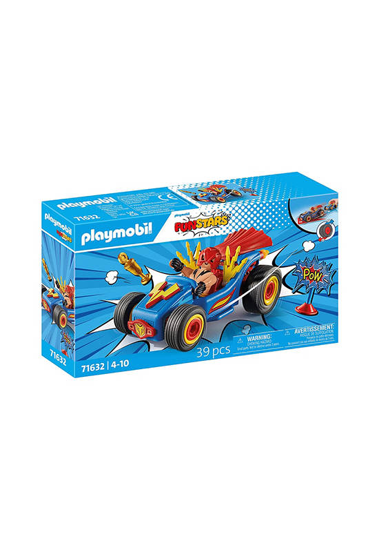 Exciting PLAYMOBIL Funstars playset Racing Wrestler with one PLAYMOBIL figure, kart and many crazy accessoires.