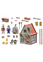 Medieval PLAYMOBIL bakery from the History range with baked goods, two PLAYMOBIL figures and many accessories.