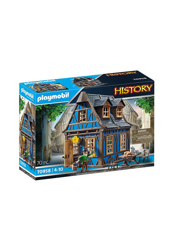 Experience exciting role-playing adventures with the Medieval Home from PLAYMOBIL. The antique blue half-timbered building offers everything for endless play fun. With table, chairs and numerous accessories, the house can be comfortably furnished. A great gift or souvenir for creative children aged 4 years and up. Expand the Historical House with other PLAYMOBIL playsets from the History range (70953, 70954, 70957, 70957 — sold separately) and create your own medieval town.