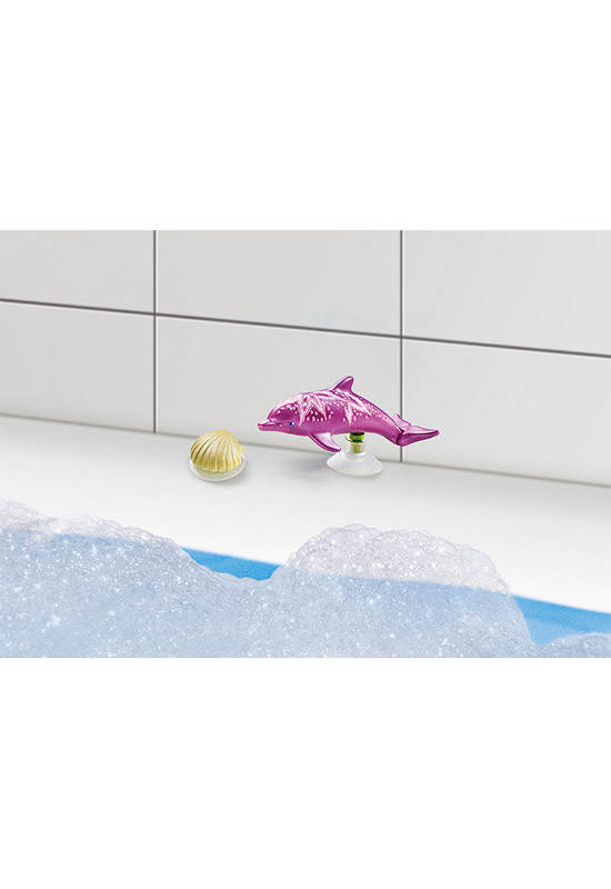 The mermaid cares for the dolphin mother and her offspring. With baby dolphin and decorative shell to attach to smooth surfaces (incl. suction cups).