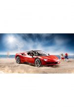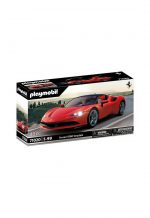 Introducing a new and exciting supercar into the PLAYMOBIL car fleet: the Ferrari SF90 Stradale. Feel the inimitable Ferrari vehicle look come to life in this unique PLAYMOBIL model. The Ferrari SF90 Stradale from PLAYMOBIL fascinates with sleek, aerodynamic lines, the iconic bright red color typical of Ferrari sports cars, authentic interior design, and realistic light functions. Remove the roof to reveal the detailed interior that includes an illuminated dashboard, steering wheel with Ferrari logo, and enough space to seat two PLAYMOBIL figures. Inside the trunk you will find the V8 engine. A fantastic replica of the Italian series production supercar, ideal for all car lovers to display, admire, or play with.