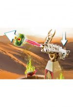 The gleaming temple of Sal’ahari Sands is what the eerie skeleton warriors call home. It is here that the undead army, led by the fearsome Skeleton King Sul’thanath, plan their next move against Novelmore. As undead, they fear nothing and no one. Should anyone dare to approach the temple, they are greeted with skull bullets from the skeleton cannon. Before each battle, the undead replenish their energy. To do this, they stand on the magical spring in the middle of the temple and wait until the glowing green slime has fully charged them up and their eyes begin to glow. These sinister desert warriors are not to be trifled with! The playset contains the skeleton king Sul’thanath, as well as the two sorcerer’s apprentices Omagus and Andowan, a temple with light module, skeleton cannon, spider webs, torches and many other extras. The head of the figures is equipped with an energy storage device that can be charged by the induction coil in the temple, causing the figures eyes to glow.