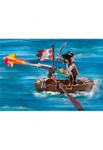 Beware, for the giant octopus is approaching! The pirate is trying to escape in his rowboat, but the giant squid and its companion Deepers are faster. They catch up to the boat, and the octopus gives the pirate a cold shower with its tentacle. The pirate doesn’t even have time to load his cannon. It’s better not to mess with this extraordinary sea creature! With imaginative characters and detailed equipment, the Pirates playsets from PLAYMOBIL offer hours of fun for pirate fans aged 4 and up. The giant octopus has a water-spraying function. The pirate boat floats and can accommodate one PLAYMOBIL figure.