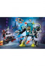 Immerse yourself in the battle of machines with the Robot vs. Glider Promo Pack from PLAYMOBIL. Hop onto the glider with two propulsion nozzles and a rotating cannon, and plunge into action. However, the combat robot is equally versatile, equipped with two cannons and a drone. To place a figure in the robot, the cockpit can be unfolded forward. The highly maneuverable combat robot can also be transformed into a vehicle in two positions. Action-packed fun with many exciting features for children aged 4 and up. The intricately detailed playset includes two PLAYMOBIL figures, a hovercraft, a movable robot, a drone, and numerous additional accessories.