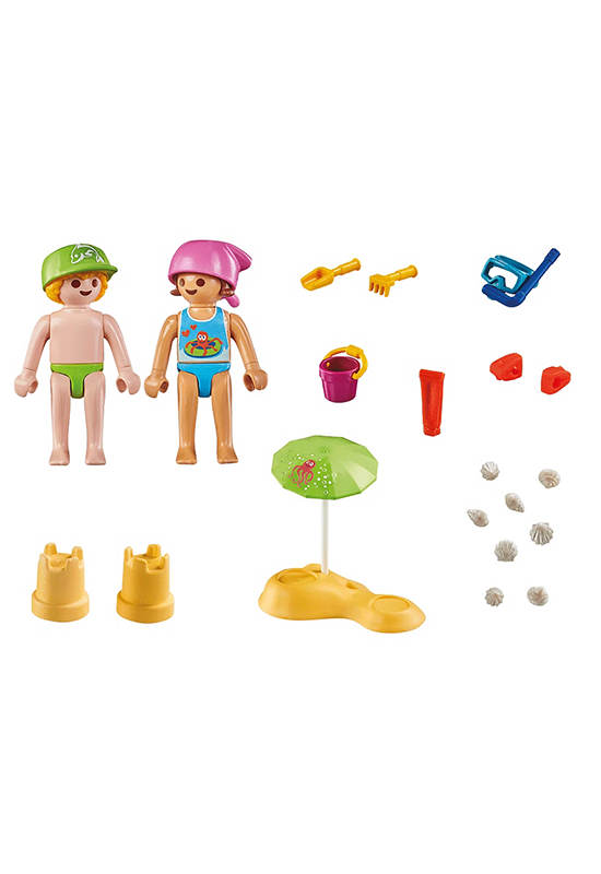 PLAYMOBIL Special Plus Beach Fun with two children figures, sandcastle, diving goggles, parasol, and other fantastic extras.