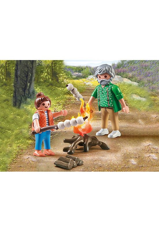 • Lovingly designed PLAYMOBIL playset with two PLAYMOBIL figures, a campfire, two wooden sticks, and six marshmallows.