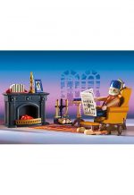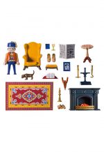 The grandfather enjoys the quiet evening hours reading in the lounge by the fireplace. While the fire crackles comfortably, he puts his feet up on the stool and opens the newspaper. His faithful dog makes himself comfortable in front of the warm fire. Once all the news of the day has been studied, an exciting book lies ready on the table. If it gets late, the logs can be used to reheat the fire. A lovingly designed toy with many details ideal to play with individually or to furnish the large Victorian Dollhouse. The play figure set contains a PLAYMOBIL figure, a dog, a wing chair, a fireplace, a table, newspaper and book and many other extras.