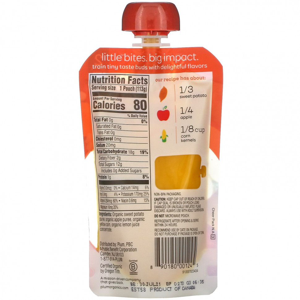 Банан и тыква | 113 г ,этап 2/ банан/ цуккини и амарант/ 99 г (3/5 унции) ,этап 2/ батат/ яблоко и кукуруза/ 113 г (4 унции) ,этап 2/ груша и манго/ 113 г (4 унции) ,этап 2/ груша/ пурпурная морковь и черника/ 4 унции (113 г) ,этап 2/ груша/ шпинат и горох/ 113 г (4 унции) ,этап 2/ манго/ батат/ яблоко/ пшено/ 99 г (3/5 унции) ,этап 2/ персик/ банан и абрикос/ 4 унции (113 г) ,Яблоко и брокколи | 113 г ,Яблоко и морковь | 113 г ,Яблоко/ слива/ ягоды и ячмень | 99 г |