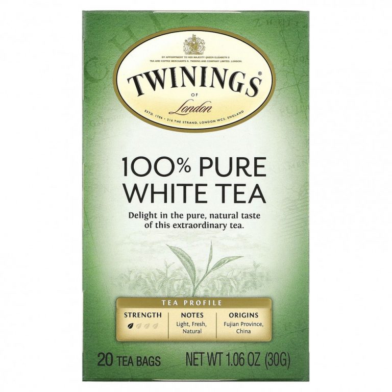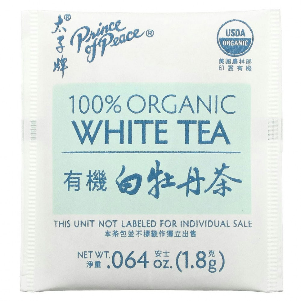 Наш на 100% органический белый чай изготовлен из собранных вручную молодых листьев и нежных почек, которые проходят специальную обработку для получения более насыщенного аромата, более темного цвета и увеличения объема. Белый чай обычно обладает более высоким содержанием антиоксидантов по сравнению с зеленым чаем. Чашка белого чая содержит около 10–20 мг кофеина, а чашка кофе — 100–180 мг.