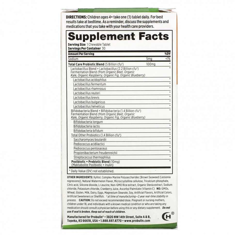 Пребиотик — пробиотик Probulin’s® Total Care, который содержит наш пребиотик, действующий как пища для пробиотических бактерий.