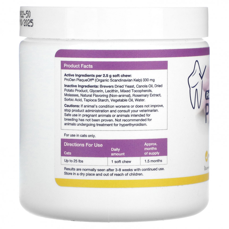 Для кошек. Рекомендуется для поддержания здоровья зубов, десен и устранения неприятного запаха изо рта. Ключевой ингредиент ProDen PlaqueOff® — это 100% натуральные бурые водоросли, которые собираются в чистых и холодных водах у побережья Скандинавии. Клинические испытания наших водорослей показали, что они помогают уменьшить зубной налет и зубной камень, а также помогают уменьшить неприятный запах изо рта.