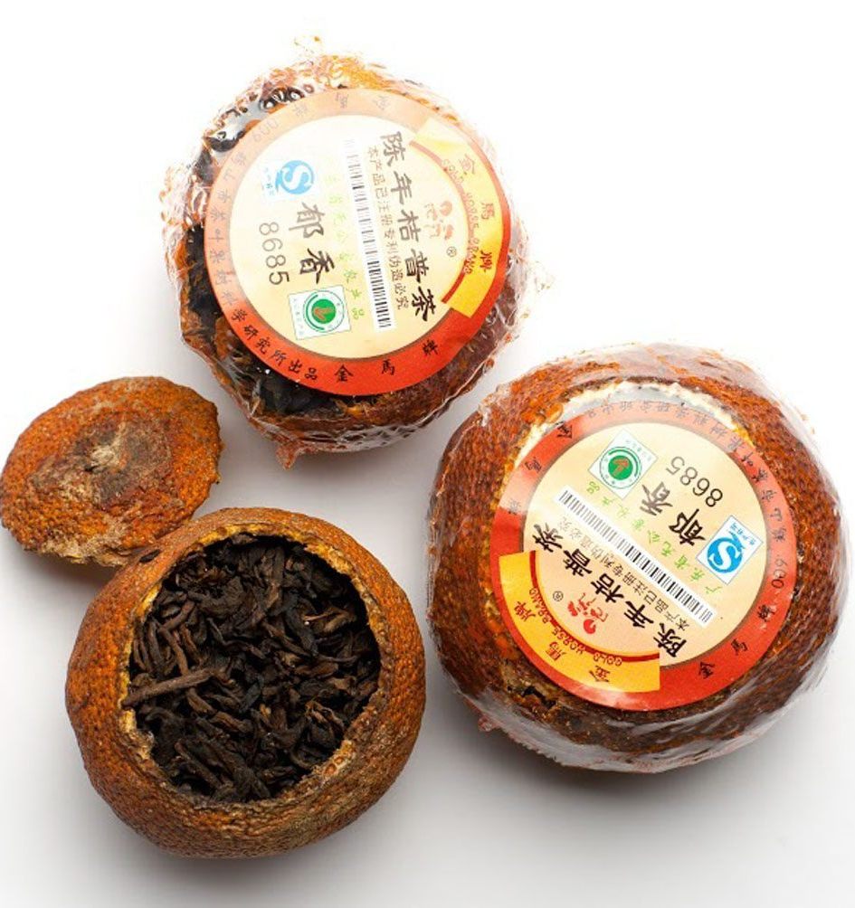 Название «Пуэр в мандарине» стоит понимать буквально, потому что это именно и есть Пуэр в мандарине. При изготовлении этого чая берется: непрессованный молодой Шу Пуэр (25 грамм) и мандарин (1 штука). Затем с мандарина срезается шляпка.