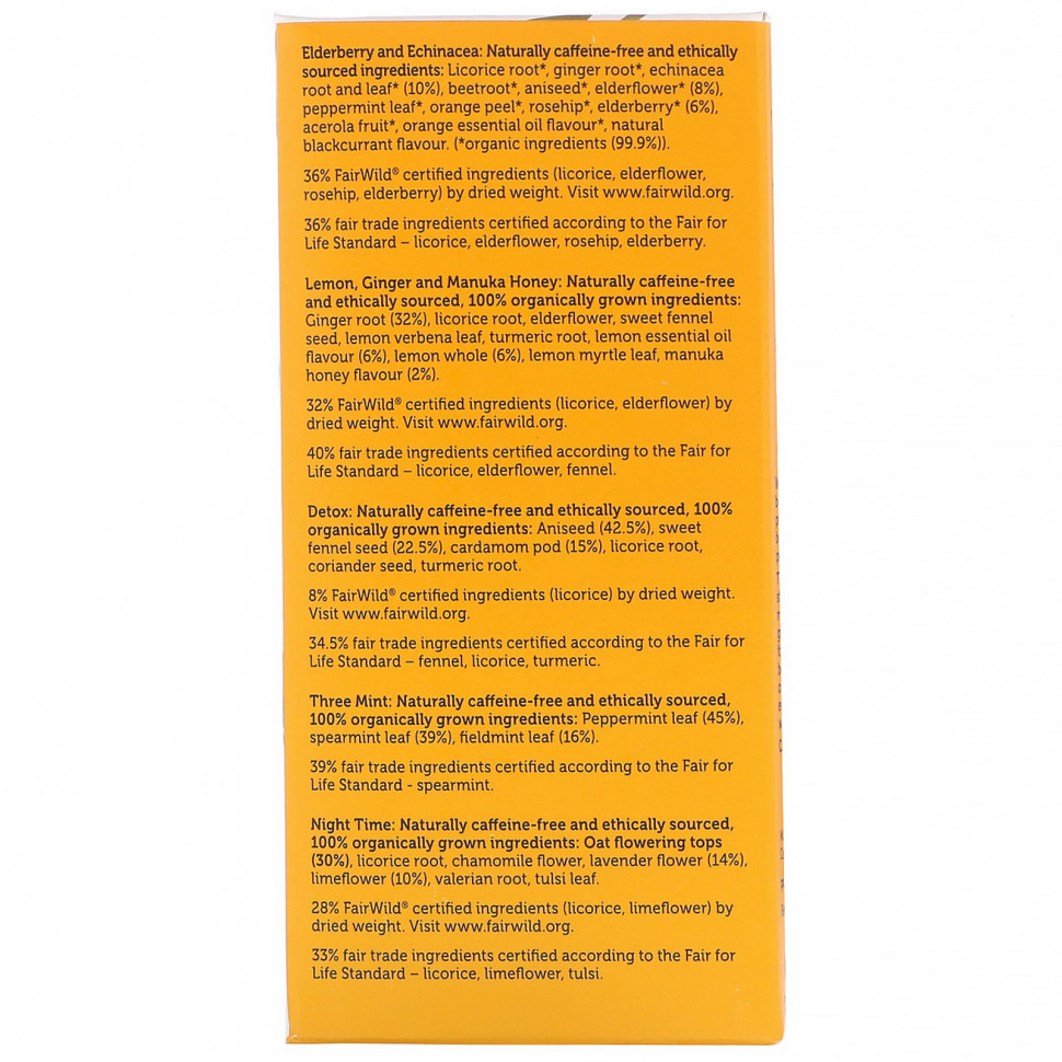 Добро пожаловать в коллекцию экологически чистых впечатлений от Pukka. Она создана для того, чтобы радовать ваши вкусовые рецепторы и будоражить вашу душу. Наслаждайтесь теплотой свежих фруктов бузины& Эхинацея, пряно-сладкое тепло лимона, имбиря& Манука Мед, чистая сладость Детокса, мягкая прохлада Трех Мят, и нежные сны Ночного Времени. Ваш ящик с травяной мудростью.