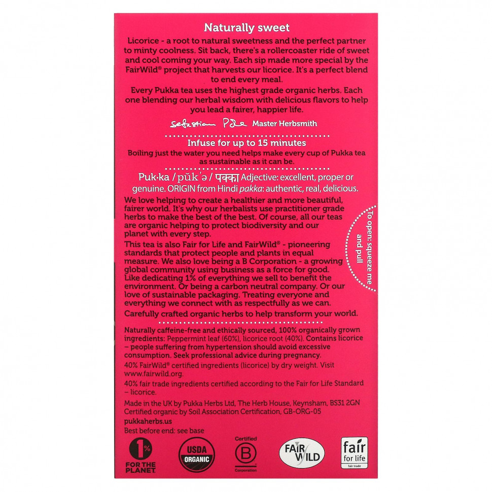 Сядьте и наслаждайтесь волнами сладости, наплывающими в вашусторону. Натуральная радость от лакричного корня FairWild, мятный блеск свежих листьев перечной мяты, тщательно составленная природная смесь поражает чувства до мурашек. Наслаждайтесь процессом. Пусть вам будет приятно.