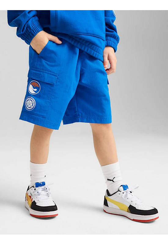 Gear up for the fast lane with PUMA x HOT WHEELS™. This collab is made for a universe where speed isn’t just a thrill, but a way of life. This kids collection, including these shorts, celebrates classic Hot Wheels™ cars with bold graphics, playful designs, and tactile details.