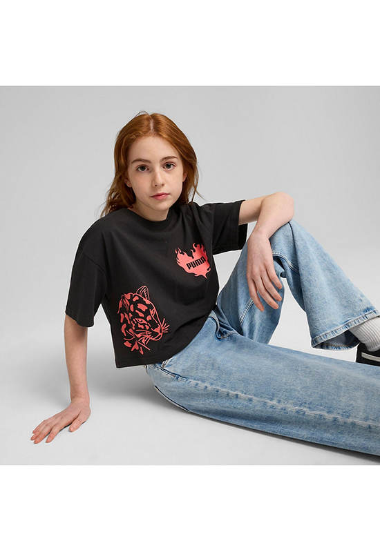 Step up your game with this short-length tee, featuring bold rubber print graphics and a ribbed crew neck. Designed for the dynamic and daring, this PUMA piece brings energy and style to your everyday adventures. Embrace your PUMA spirit!