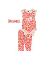 Featuring an all-over animal print, this PUMA 3-piece set includes a bodysuit, leggings, and a head accessory. With No.1 Logo rubber prints and a button hem closure, your little one will be ready to take on the day with playful energy and style.