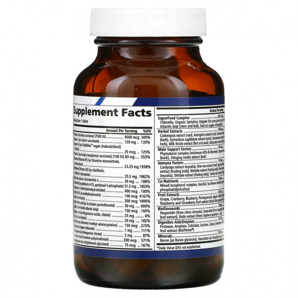 One ‘n’ Only ™ для мужчин содержит более 23 000 мг цельных продуктов и сочетает в себе витамины, минералы, органические суперфуды, лучшие травы, антиоксиданты, защищающие клетки, и уникальные мужские факторы, собранные в удивительный поливитаминный и минеральный комплекс, предназначенный для приема один раз в день, который поддерживает