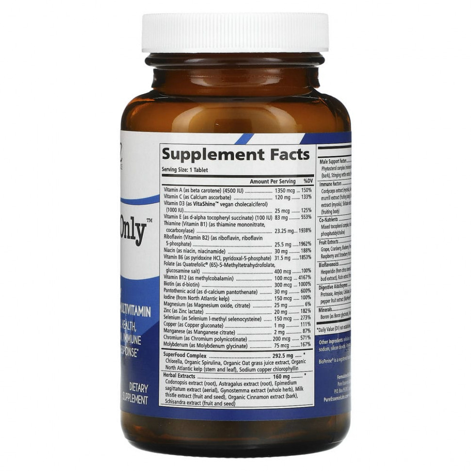 One ‘n’ Only ™ для мужчин содержит более 23 000 мг цельных продуктов и сочетает в себе витамины, минералы, органические суперфуды, лучшие травы, антиоксиданты, защищающие клетки, и уникальные мужские факторы, собранные в удивительный поливитаминный и минеральный комплекс, предназначенный для приема один раз в день, который поддерживает