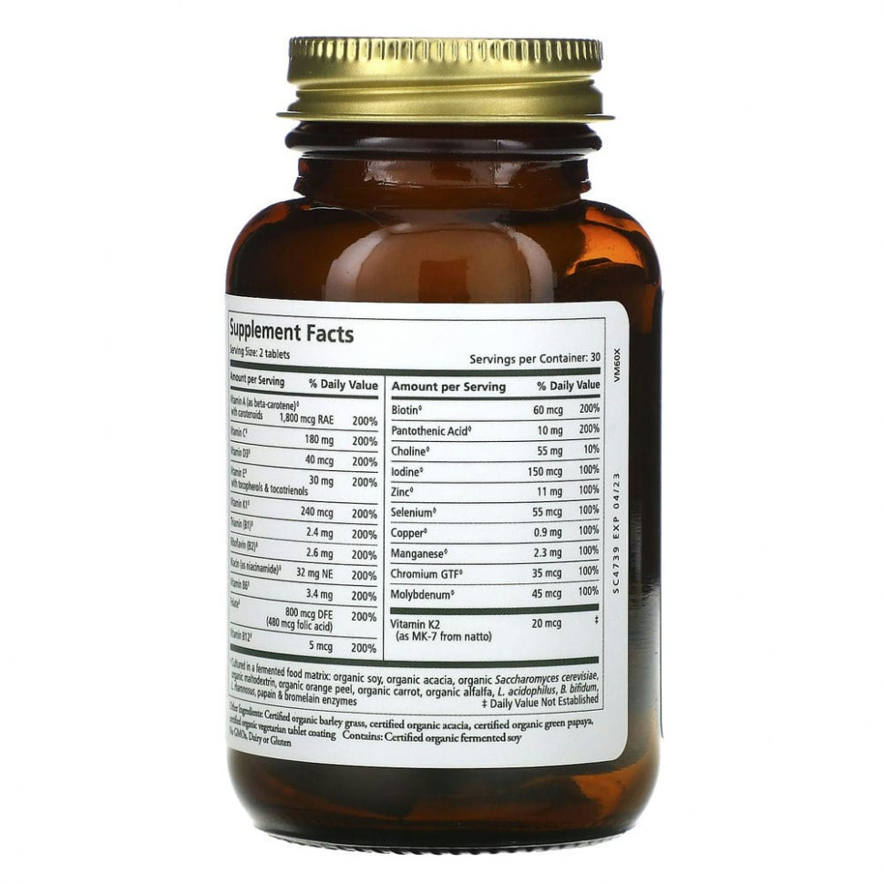 Multi•Vita•Min™ сделан из цельных органических овощей и фруктов. Для поддержания здоровья.достаточно ежедневно принимать всего лишь 2 таблетки, в которых содержатся все 13 основных витаминов и 7 основных микроэлементов. Состав усилен ферментами и пробиотиками, которые повышают биодоступность добавки, действуют в желудке деликатно и оказывают восстанавливающее действие, сравнимое с приемом пищи!