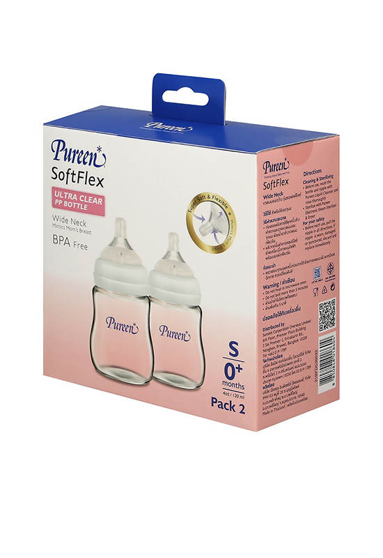 PUREEN Baby Bottle Unique Shape Design with Easy Grip Shape,BPA-Free 0% ULTRA CLEAR PP BOTTLE