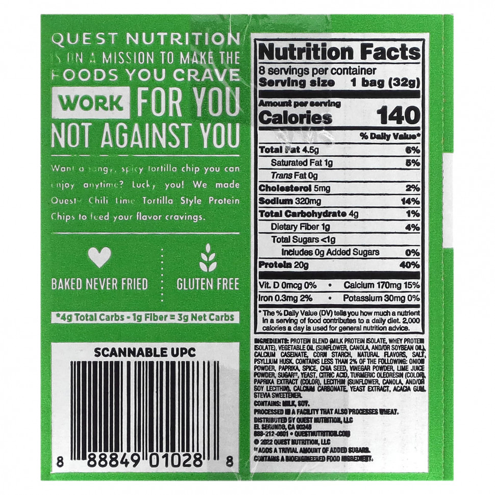 Хотите крепкие пряные чипсы из тортильи, которыми можно наслаждаться в любое время? Вам повезло! Мы приготовили протеиновые чипсы Quest® с чили и лаймом, чтобы удовлетворить ваши вкусовые предпочтения.