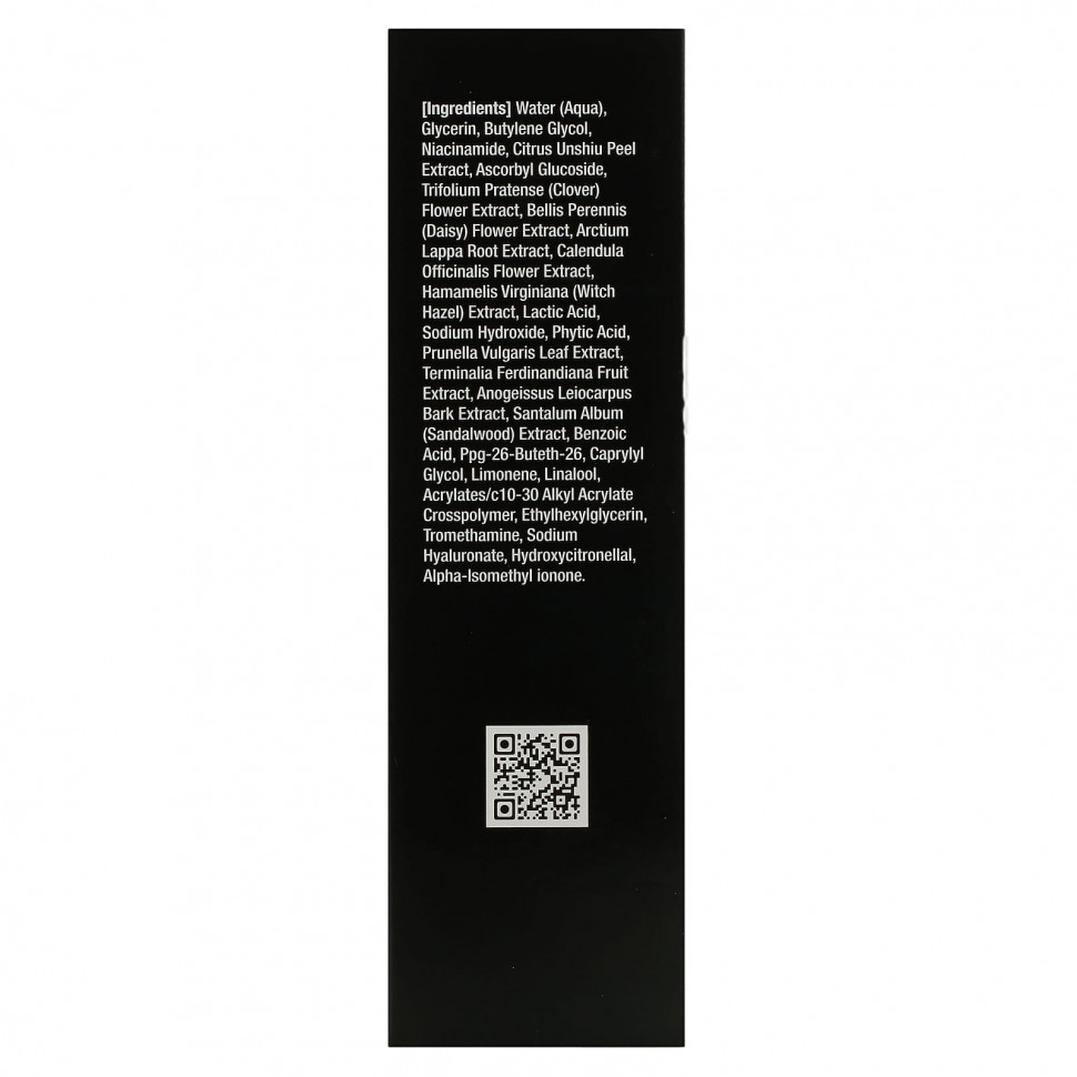 вода (Aqua), глицерин, бутиленгликоль, никотинамид, Экстракт цедры цитрусовых уншиу, Аскорбил глюкозид, Экстракт цветков клевера (Trifolium pratense), Экстракт цветков ромашки (Bellis perennis), экстракт корня лопуха (Arctium lappa), экстракт цветков календулы (Calendula officinalis), экстракт гамамелиса (Hamamelis virginiana), молочная кислота, гидроксид натрия, фитиновая кислота, Экстракт листьев сливы обыкновенной (Prunella vulgaris), Экстракт плодов Terminalia Ferdinandiana, Экстракт коры аногейссуса лейокарпуса, Экстракт сандалового дерева, Бензойная кислота, ППГ-26-Бутет-26, каприлилгликоль, лимонен, линалоол, Акрилаты / c10-30 алкилакрилатный кроссполимер, этилгексилглицерин, трометамин, гиалуронат натрия, Гидроксицитронеллаль, Альфа-изометилионон.