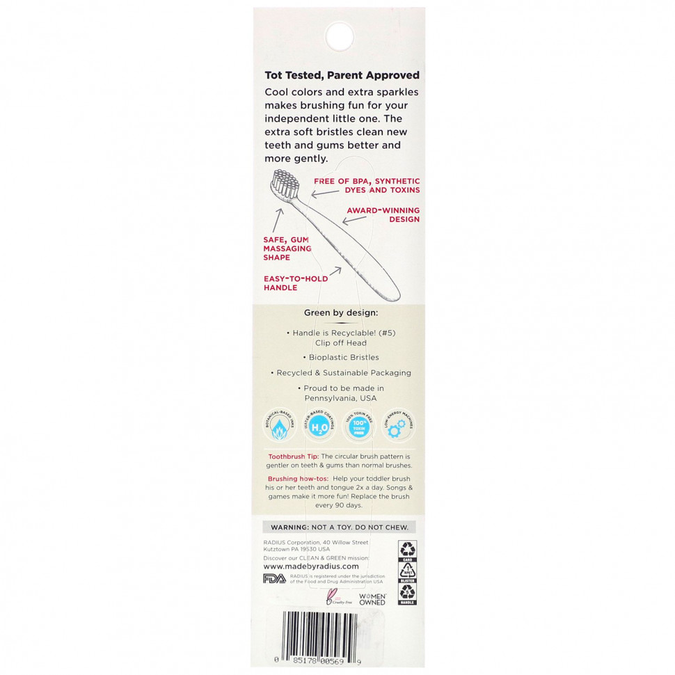 Привлекательные цвета и множество блесток сделают чистку зубов веселым занятием для самостоятельного малыша. Экстрамягкие щетинки более аккуратно и эффективно чистят зубы и десны.