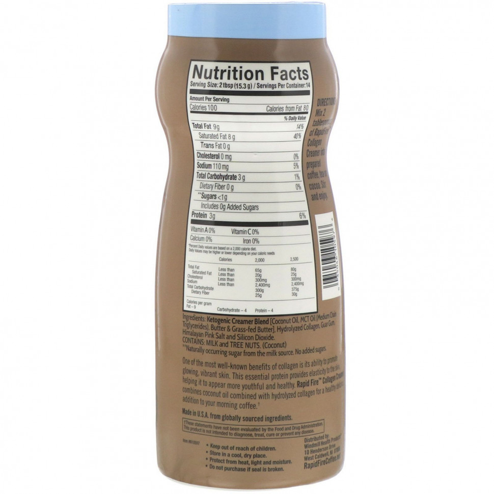 Одно из наиболее известных свойств коллагена — это его способность поддерживать сияние и свежесть кожи. Этот незаменимый белок повышает эластичность кожи, придавая ей молодой и здоровый вид. Коллагеновые сливки от RapidFire™ содержат кокосовое масло в сочетании с гидролизованным коллагеном и представляют собой здоровую и вкусную добавку к утреннему кофе.