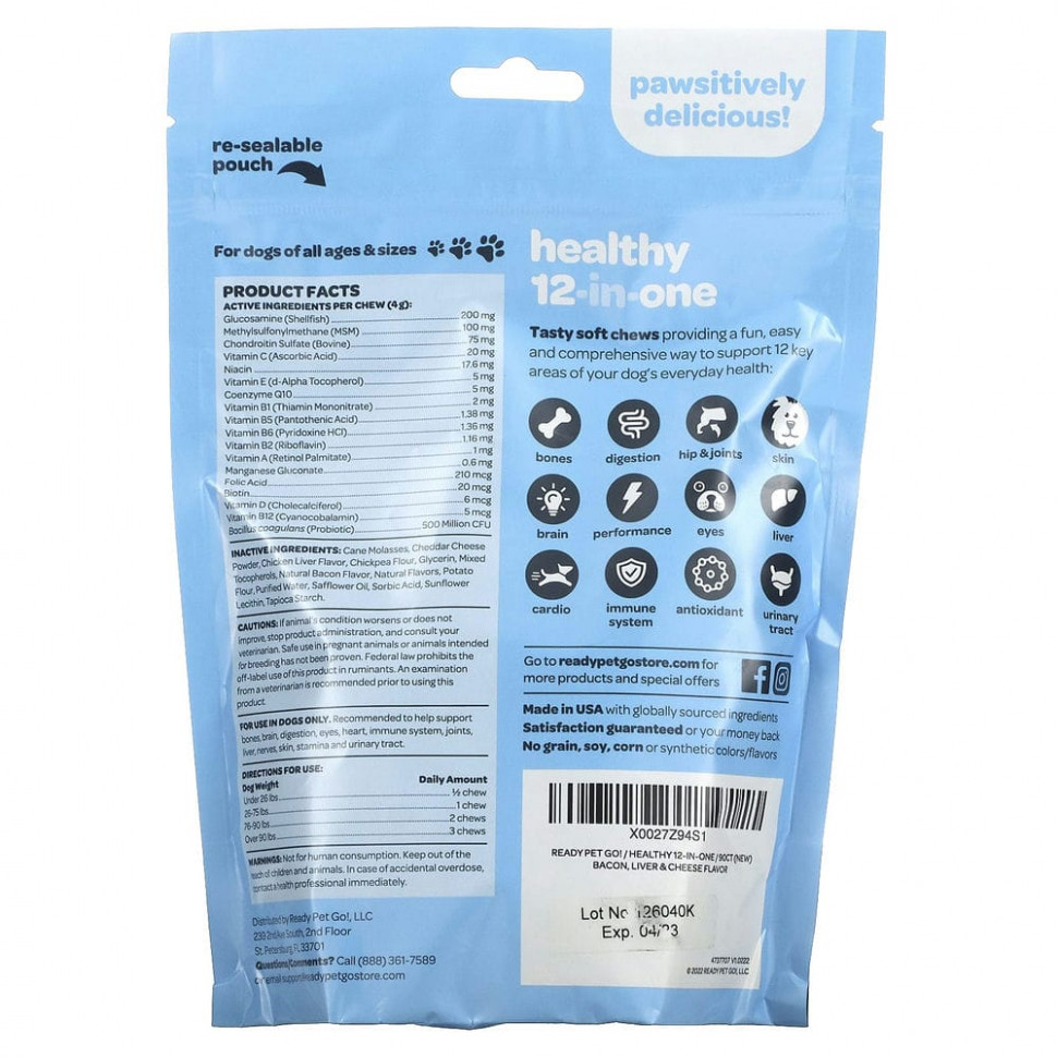 Ready Pet Go! Жевательные мультивитамины — это восхитительные жевательные таблетки с необходимыми витаминами, минералами и питательными веществами, которые ежедневно необходимы вашему пушистому другу для общего здоровья и хорошего самочувствия.