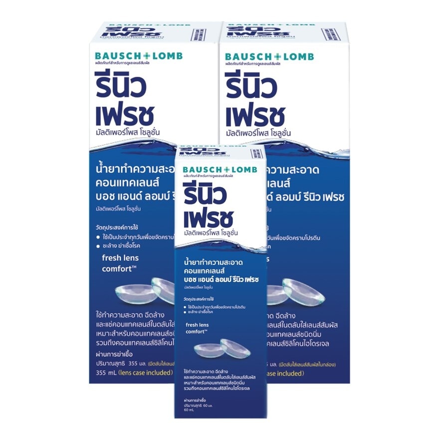 Renu Fresh multi-purpose solution is speciallly formulated to work with your natural tears. Experience the feeling of wearing fresh pair lenses cushioned in moisture.Renu Fresh is proven to fight germs, clean lenses and remove irritating protein deposits daily from your soft contact lenses ฆพ. 1669/2564