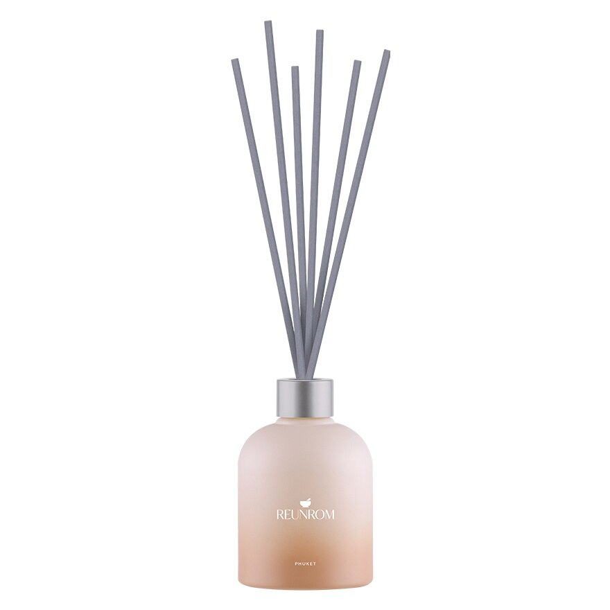 This room diffuser captures the invigorating freshness of Phuket is seaside atmosphere evoking a sense of luxury and the refreshing scent of the emerald green sea It embodies a distinct level of freshness with zesty notes of Orange Blossom and Grapefruit blending flawlessly with the soft fragrance of Violet Flowers The scent gently concludes with comforting hints of Musk transporting you to a stylish vacation home on the breathtaking island of Phuket Product usage Remove the rubber cap and place the rattan reeds into the bottle to let them soak up the scent and dispense it into the air To refresh the scent turn the sticks upside down The fragrance strength depends on the weather condition and the room size