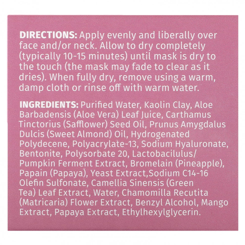 Очищенная вода, каолиновая глина, сок листьев алоэ вера (Aloe barbadensis), масло семян сафлора (Carthamus tinctorius), масло сладкого миндаля (Prunus amygdalus dulcis), гидрогенизированный полидецен, полиакрилат-13, гиалуронат натрия, бентонит, полисорбат 20, ферментированный экстракт лактобактерий / тыквы, бромелаин (ананас), папаин (папайя), экстракт дрожжей, натрия С14-16 олефин сульфонат, экстракт листьев зеленого чая (Camellia sinensis), вода, экстракт цветков ромашки лекарственной (Chamomilla recutita), бензиловый спирт, экстракт манго, экстракт папайи, этилгексилглицерин.