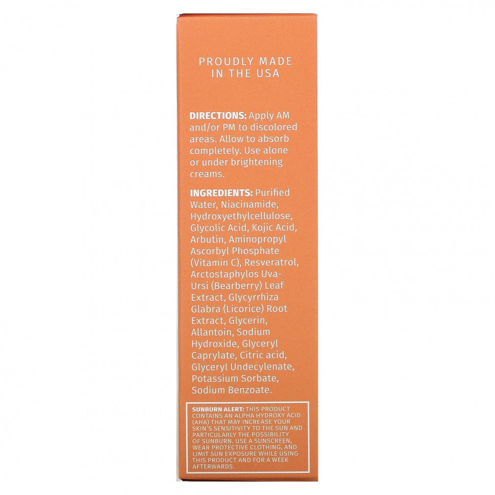 Эта уникальная формула содержит гликолевую кислоту, койевую кислоту, никотинамид, ресвератрол, витамин C, арбутин, солодку, и ежевику, придающие коже сияние.